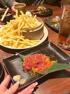 今日も一日お疲れ様です🎶 本日18:30〜出勤してます! 年始にお友達と! 大学生の時に通いまくってた 激安居酒屋行ってきた🏮🍺 馬刺しユッケが好きすぎて 今回も光り輝いてた🌟 もちろんポテトも大盛りね🍟 船橋も美味しい馬刺しあるの気になる!!